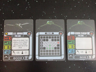 The Korinar itself has a really nice ability, giving you an extra attack die at range one over the usual as long as you are cloaked - so if you can get into a flanking position, the Korinar can realy dish out the damage. As always, a generic B'rel is included. Excellent movement profile coupled with the cloak/sensor echo means you can pull some really good manouvers with this ship.